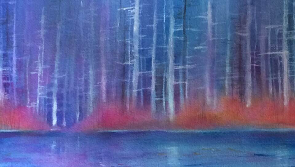 “Art has been part of my life since childhood, with lessons at the Edmonton Art Gallery and encouragement from my Grand-Uncle, Murray MacDonald who was a former member of the Edmonton Art Club and a well known watercolourist. When Murray retired from the University of Alberta, he began teaching me every Sunday afternoon and eventually we had a three generation show with Murray, my Aunt and myself. There have been many shows since. My first job in education was teaching and writing Art courses for the Alberta Correspondence School. From there I moved on to Edmonton Public Schools with a varied career in which Art was always involved. I recently retired as Assistant Principal of an elementary school with a Fine Arts Focus. I have always preferred the spontaneity and experimentation possible with watercolor but in the past year I have been playing with carving modeling paste for a textured foreground with acrylic and watercolour paint. This allows me to play with texture and rock formations in the foreground.”