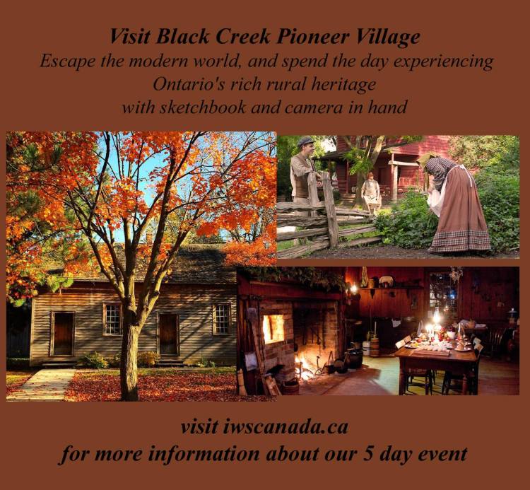 Black Creek is a working village, typical of those established in south central Ontario between the 1790’s and the 1860’s. Escape the modern world, and spend the day experiencing Ontario’s rich rural heritage with sketchbook and camera in hand. This is one of the activities scheduled during our Five Days of Celebration Event. We will be visiting the Pioneer Village on Sunday, September 30.