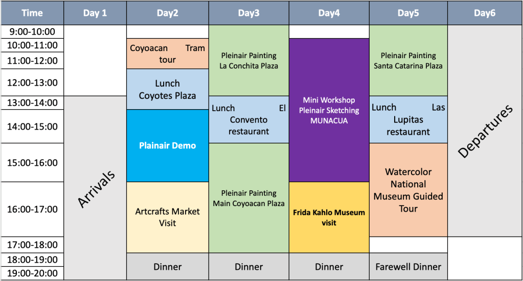 (once we know who is in for sure we will have a zoom meeting together to finalise the last details like which flights we are taking, and how and when people will be arriving at the airport for transport to Coyoacan.)